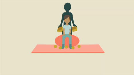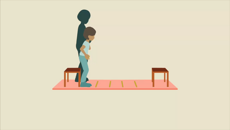 Наведувајќи го детето низ играта да стане, се тренираат екстензорските мускули во колената и колковите. Вежбата е наменета за деца од година и пол до 3 години, но може да ја користат и постарите деца. За оваа вежба потребна е умерено високо столче.